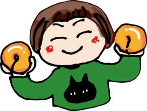 そのTやんに『私が両手にベーグル持ってる絵を描いて』とお願いしたところ、サササッ…と、描いてくれました。